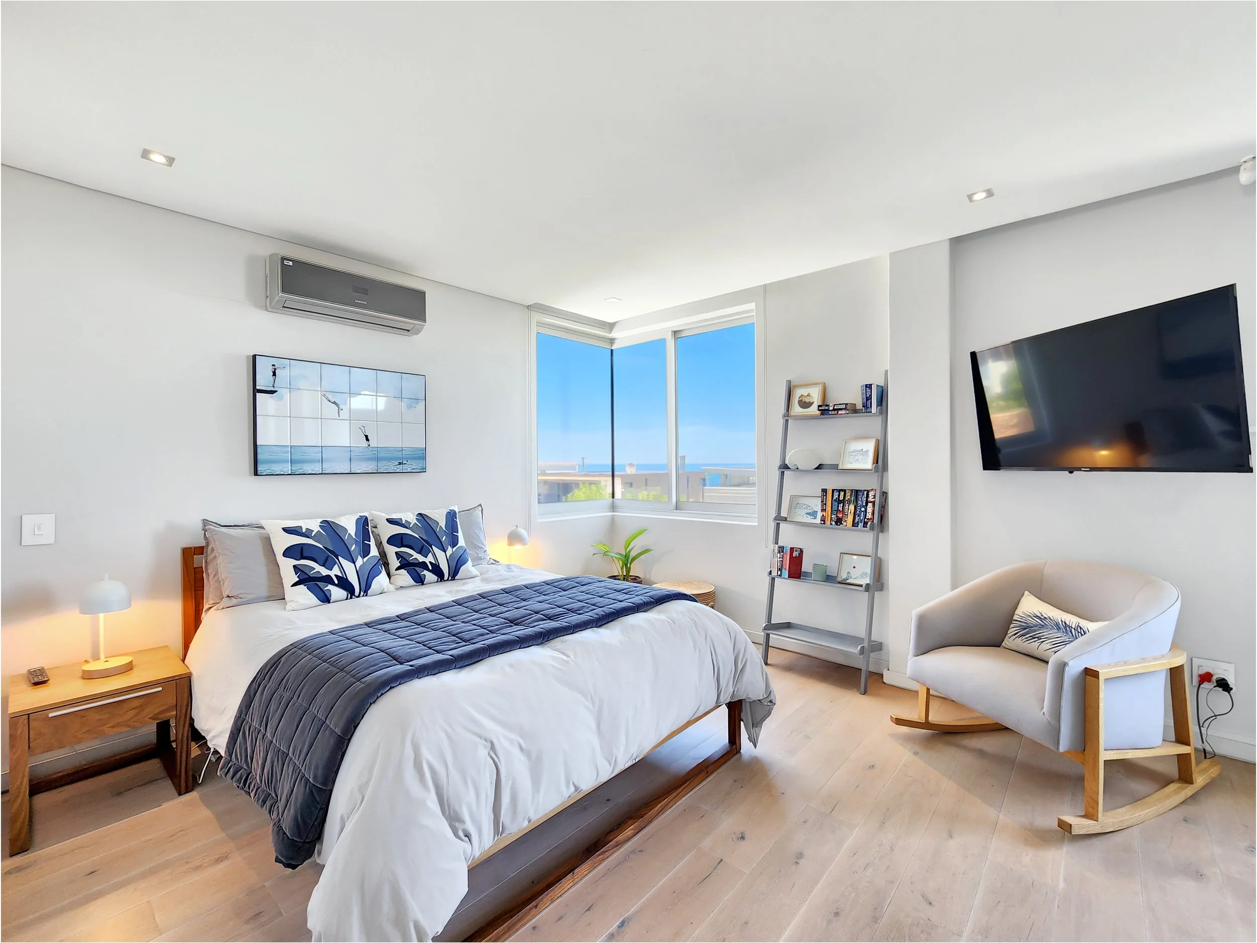 Located on the top floor, the Master Bedroom showcases sweeping views over the ocean. The en-suite bathroom features both a bath and shower, and you can enjoy uninterrupted views of the Atlantic Ocean and the Twelve Apostles mountain range while relaxing in the tub. The suite also includes an open walk-in closet, adding a touch of luxury and convenience.